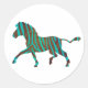 Zebra Brown and Teal Print Silhouette Classic Round Sticker