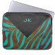 Zebra Brown and Teal with Monogram Laptop Sleeve