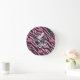 Zebra & Cupcakes Pink & Black Glitter Animal Print Round Clock
