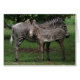 A young zebra sticks by his mum.