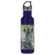 Close-up photo of a zebra foal looking at the camera; its mother partially seen to the right of photo; greenery in background. I chose a dark blue for the background colour of the bottle, but other colours are also available. This photo was created in 1996 during an African safari to Zambia.