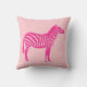 Cute graphic of a Zebra throw pillow in deep fuchsia pink and pastel pink