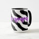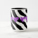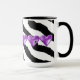 A classy zebra fur print with purple hearts accents this mug, change styles as desired.