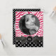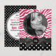 A very modern and stylish sweet sixteenth birthday party invitation for glitzy girls. Hot pink and white zebra stripe patterned background and black and white polkadot pattern design. Accented with a cute faux glitter look black coloured ribbon tied in a bow, a swirly fancy tag with her birthday number and a circle photo frame area for your photograph. Invite all of her girl friends to a special birthday party celebration with this pretty feminine, high fashion and trendy card. It has several easy to customise text areas on the reverse side for your birthday girl's name and all sleepover or celebration party details, as well as rsvp contact information, with key text in matching intense pink shade. Click the handy customise button to resize/reposition your photo if necessary and ensure that it covers the entire photo area.