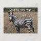 Greetings from Africa postcard featuring zebra in the wild in Kenya - fully customisable.