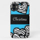 Girly, blue, black and white pattern with animal print hearts. Add your own text !