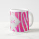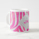 Zebra Hot Pink and White with Monogram Large Coffee Mug