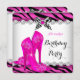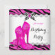 Zebra Hot Pink Glamour High Heels Birthday Party Invitation