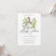 Modern and cute Zebra and her Baby Jungle Shower invitations. Gender Neutral for a boy or girl baby to be. Light grey's, black a white with pops of green foliage with a light faded zebra pattern back.