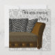 Modern leopard and zebra sofa and damask housewarming party invitation.