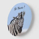 Zebra looking at you with blue sky photo large clock