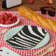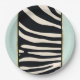 Zebra green and white print paper plate. This item is part of a collection that is customisable.