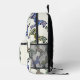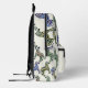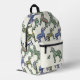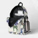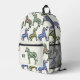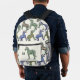 Your monogram next to a green striped zebra on the front pocket. The rest of the backpack is a pattern of blue, brick red, green and mustard striped zebras.