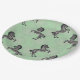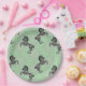 A regal black and white zebra with a soft starburst pattern on a pale green background.