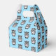 Party favour box shown in light blue in a gable style with a cute cartoon zebra.