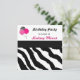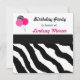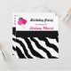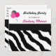 A cool modern zebra pattern design in black and white. A black border and accented by three hot pink and zebra striped balloons. Customize as desired.