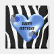Wish someone a happy birthday with this cool zebra pattern design featuring a heart accented by balloons!