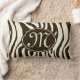 Zebra pattern brown cream monogram Throw Pillow