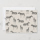 This flat notecard set features a clean white card with a personalized name in spaced capital letters at the top, paired with an allover illustrated pattern of full-body zebras in various poses on a warm sandy background on the back. The black and white stripes against the neutral ground make it feel graphic and sophisticated. A great pick for a zebra lover, a safari fan, or anyone who wants their correspondence to stand out.