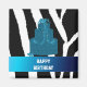 Wish someone a happy birthday with this cool zebra pattern background accented by a pretty birthday cake.