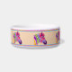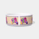This is a heavy, durable bowl decorated with Tibbies of many colors, the perfect size for hungry/thirsty Tibs. The design is interesting and printing clear.