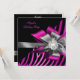 Zebra Pink Black Silver Bow Pearl Birthday Party Invitation