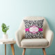 This MoJo Pillow is all about being a girly girl. Zebra print makes a striking background for an ornate frame on a polka dot fuchsia ribbon. A name or other message is showcased in the frame surrounded by curly ornaments. Makes a great addition to her room. Available in alternate colours with matching products.