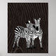 A digital painting of two Zebras in a playful manner, with a brown striped background.