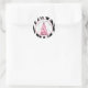 A sticker featuring a zebra print background. Illustration inside circle is of a Christmas tree with a pink colour scheme. Christmas tree features pink lights and matching zebra print ornaments, star, and tree skirt. Text above reads "Merry Christmas."