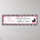 Fun zebra print with lace trims and polka dot bow and a baby carriage baby shower banner.