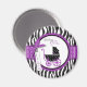 Boutique style zebra print with bright violet accents and a baby carriage baby shower magnet.
