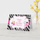A cute Pamper Birthday Party Birthday card to thank your guests for attending the special occasion featuring a zebra print background with a pink band through the middle and an ornate frame in the centre. The text can be changed to suit your own requirements.