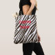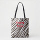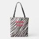 This design features a Brown & White Zebra Print pattern on both sides and would blend in with any shopping outfit. The text on both sides can be changed to suit your own requirements.