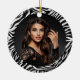 This ceramic ornament is shown in a zebra animal print in a round shape with a sample photo.