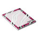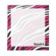 Custom printed 5.5" x 6" notepad with a black & white and colour zebra print pattern design, personalised with your name.