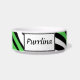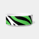 Custom ceramic cat bowl with a black, white, and colour mix zebra print pattern, personalised with your pet's name.