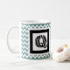 Zebra Print Letter "Q" on Teal/White Chevron Coffee Mug