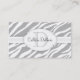 A whimsical zebra print pattern in pale grey and white makes this one ultra chic business card - perfect for a personal calling card as well as a boutique, stylist or any business. Customise with your own text for a perfectly personalised card that will grab attention! {{Click the orange "CUSTOMIZE" button to CHANGE THE BACKGROUND COLOR, FONT COLOR & TYPEFACE}}