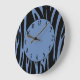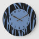 Custom Wall Clock has a fun black and blue animal print stripes pattern with a matisse font clock face.