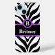 Zebra Print Purple Lace Monogram Name Case-Mate iPhone Case