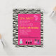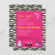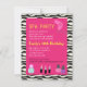 Invite your female guests for a day of pampering together with the birthday girl! Pampering activities can include manicure, pedicure, facials, hair styling and makeup and much more! Invite them with this colourful, bright and girly spa party theme invitation that perfectly sets the mood. It comes with an assortment of items for pampering and grooming, ranging from perfume, lipsticks, nail polishes, perfume and hair dryer. Colour scheme of bright pink with zebra print pattern background for that extra girly touch. Personalise easily with party details.