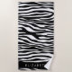 Zebra Print, Stripes, Black And White, Your Name Beach Towel