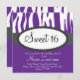 An adorable purple, black and white zebra pattern sweet 16 birthday party invitation. The invitation is cute with a wrapped ribbon, zebra stripes and violet background. Very fun and lively.