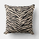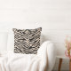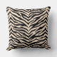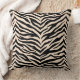 This throw pillow is shown in a exotic animal zebra print design in colours of black and a light beige.