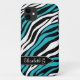 Custom printed iPhone 5 case with a black & white and colour zebra print pattern design, personalised with your name over a black arrow tag print. (Recommend, in most cases, 10 characters or less for the personalisation to fit properly in the design.)