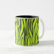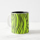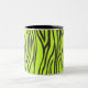 zebra print mug in black and lime green