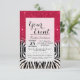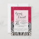 Zebra Print with Faux Pink Brush Stroke Glitter Invitation