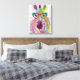 This watercolor print features a colourful portrait of a zebra in orange glasses adorned in flowers | By Fab Funky. Image ID: 192221D