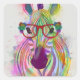 This watercolor print features a colourful portrait of a zebra in orange glasses adorned in flowers | By Fab Funky. Image ID: 192221D