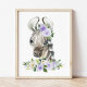 Zebra, Safari, Purple Flowers, Gender Neutral Poster